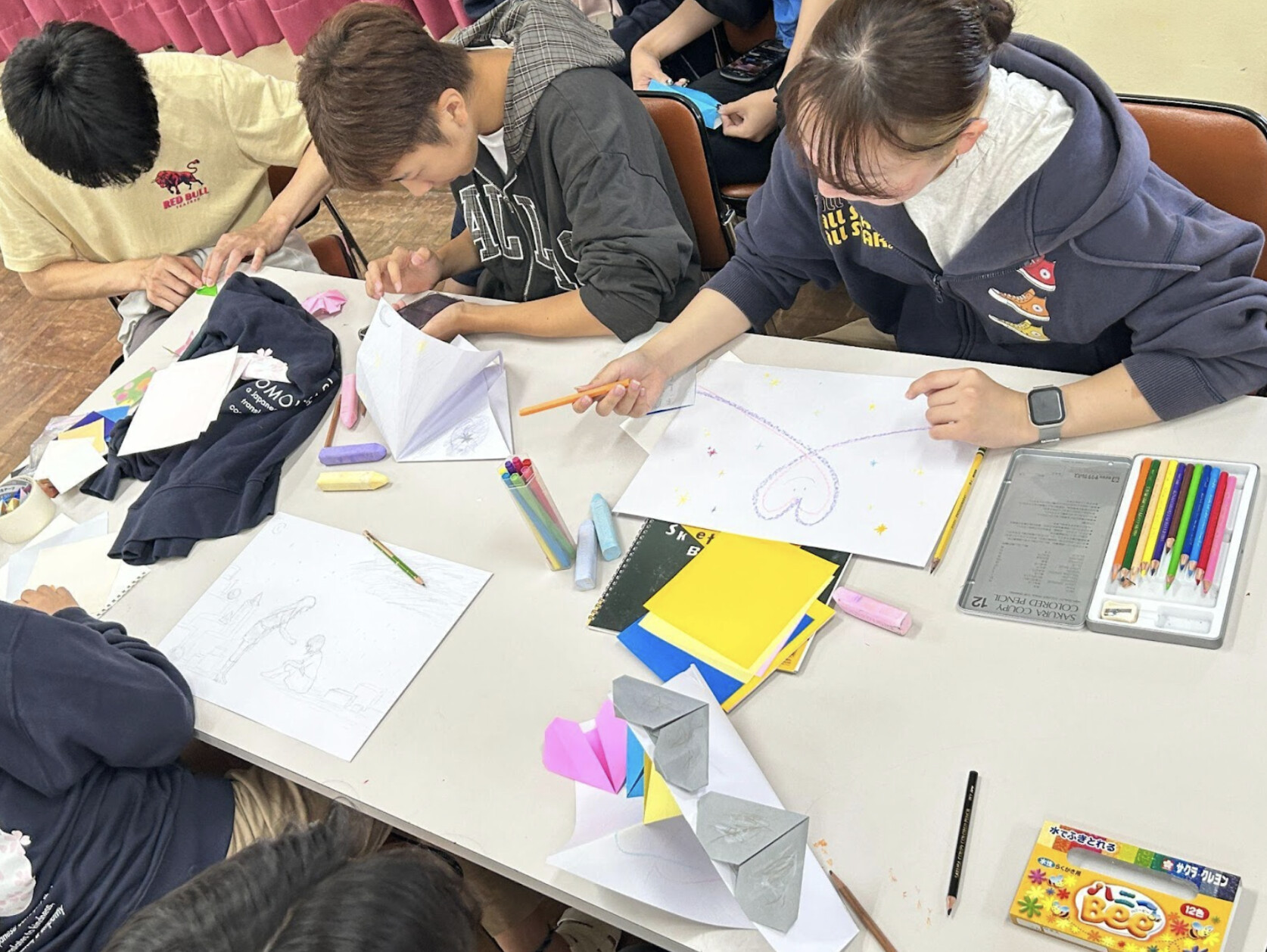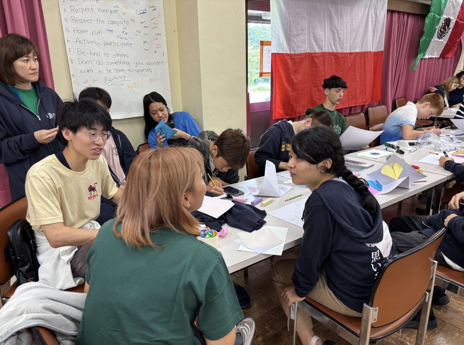 さらに別日には、キャンプ拠点の「八ヶ岳少年自然の家」で当館スタッフによるワークショップを開催。国ごとにグループになって #平和 について考え、絵やパフォーマンスを通して発表しました。🕊️🎨🎶
