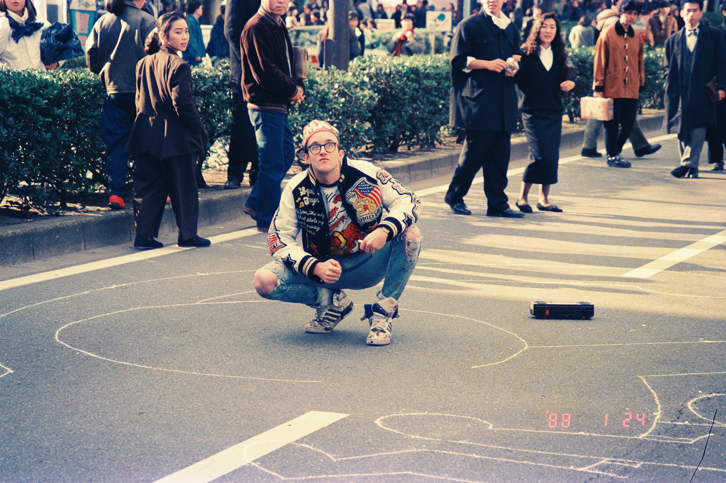 1988年、キース・ヘリングが表参道で行ったパフォーマンス。