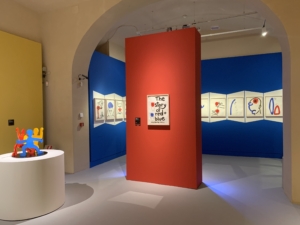 本展ではコレクションのハイライトである《無題(ピープル)》をはじめ、活動初期に地下鉄の広告板に描かれた《サブウェイ・ドローイング》、 アンディウォーホルとの共作《アンディ・マウス》などと共に、ピサでの壁画制作を記録したダニエラ・メウッチによる貴重な写真群を併せて展示しています。