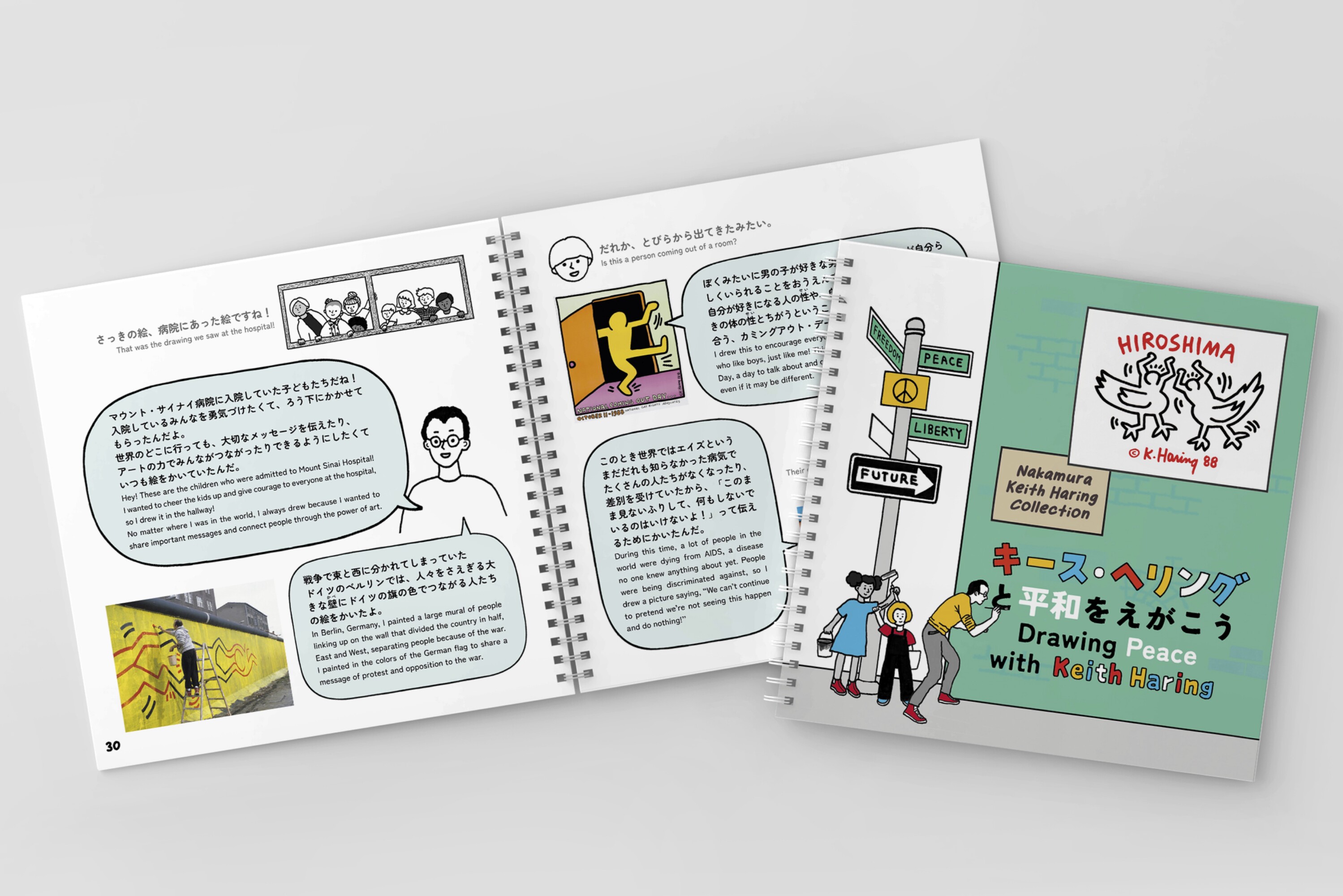 This workbook shares Haring’s messages of peace and freedom, including his Hiroshima