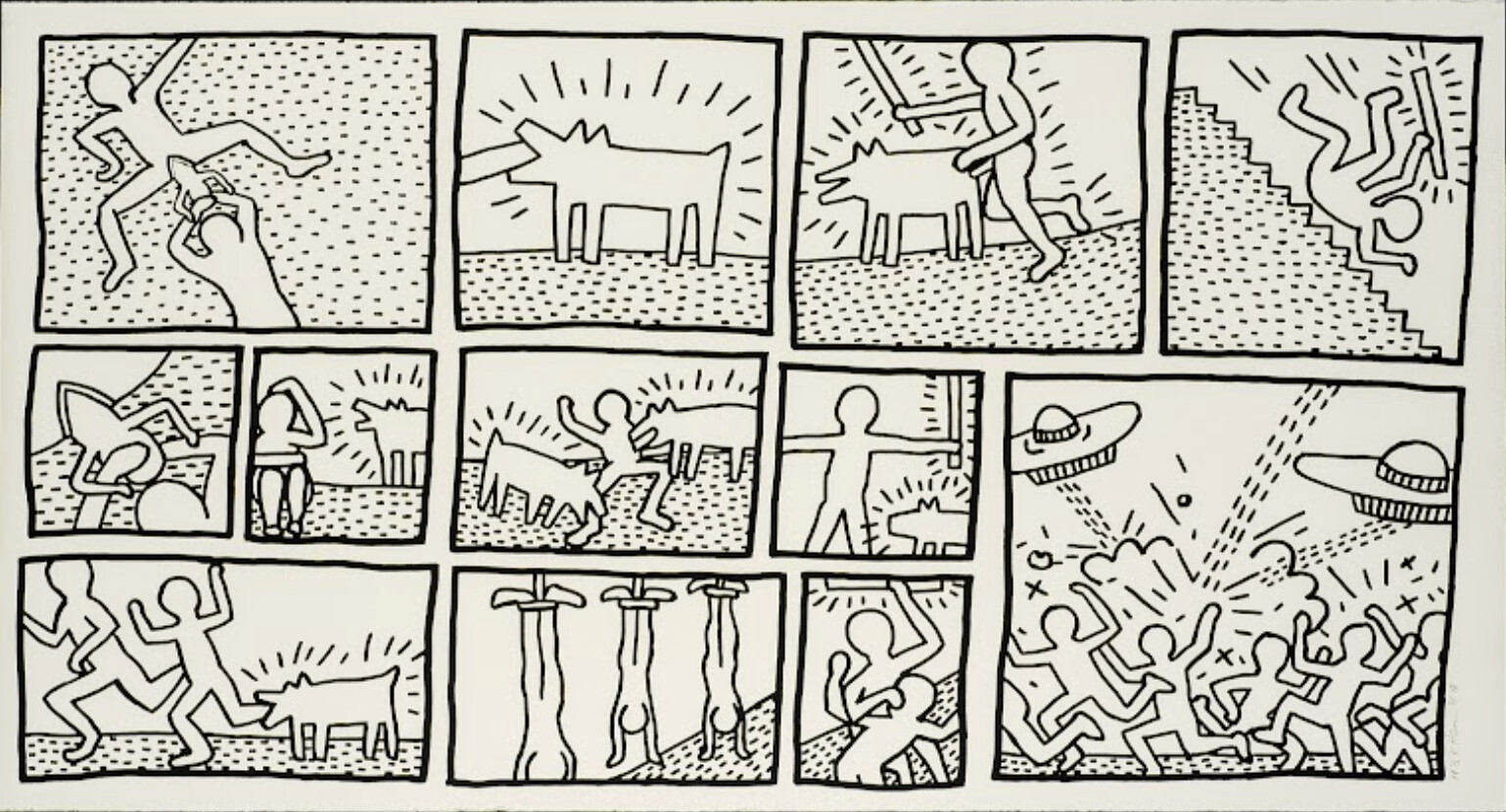 In 1980s New York, particularly in the East Village, art moved beyond museums and galleries and became embedded in the fabric of the city. Subways, walls, and streets served as sites of experimentation, where artists worked freely and the boundaries between commercial culture and the underground began to dissolve. At the center of this shift were Kenny Scharf (b. 1958) and Keith Haring (1958–1990).