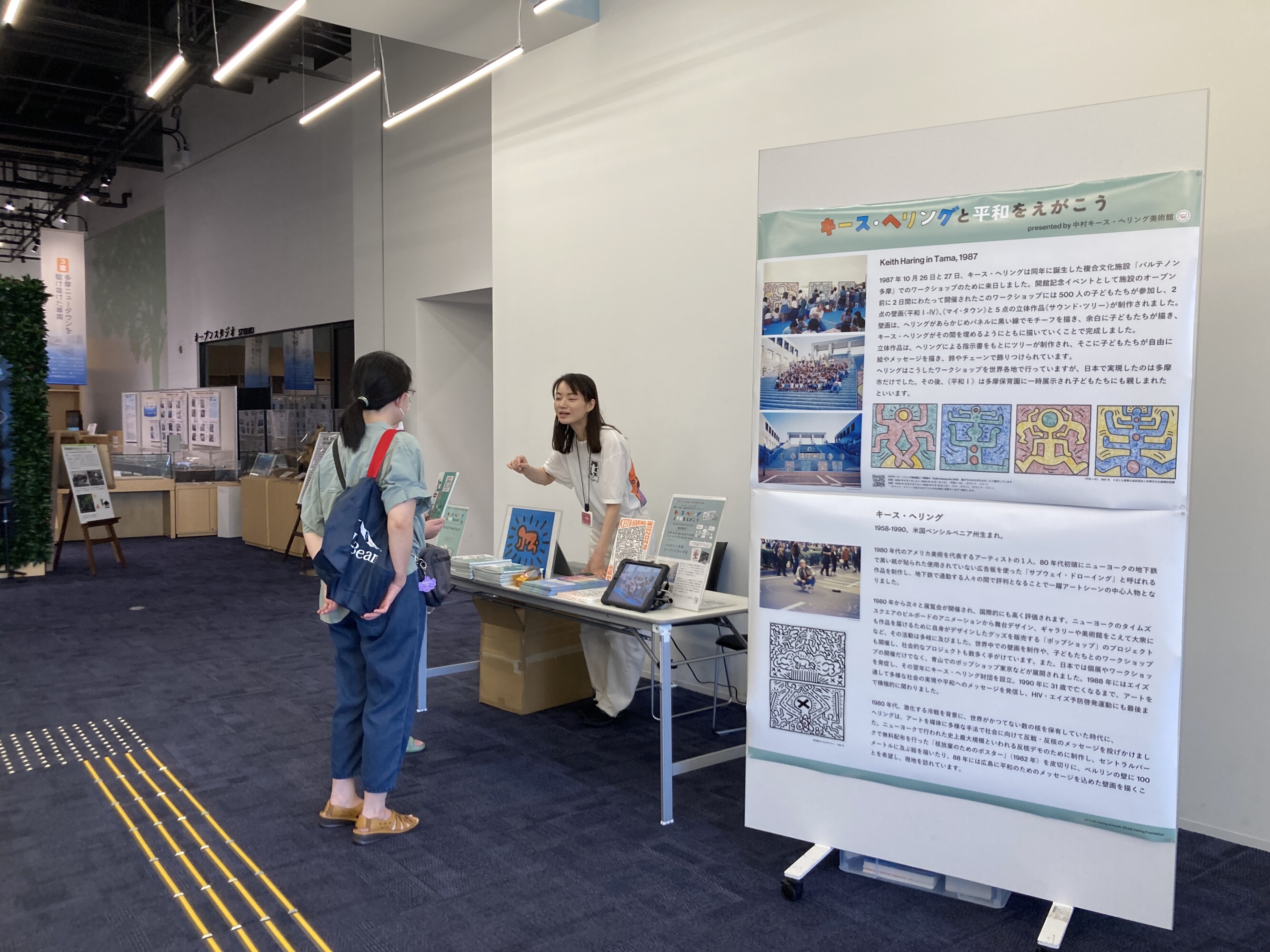 東京都多摩市にあるパルテノン多摩で開催された「第33回多摩市平和展」にて、ワークブック『キース・ヘリングと平和をえがこう』を15歳以下の子どもたちに無料配布しました。